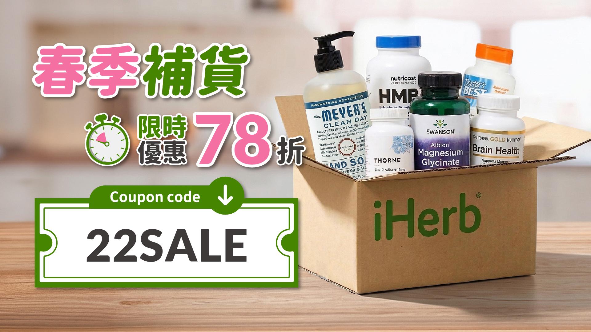 除了商品推薦外,iHerb 也同步推出多項限時優惠活動。iHerb 表示,希望透過多元健康商品與跨境直送服務,讓消費者在換季時節也能輕鬆補充所需營養,同時為了感謝消費者長年支持,iHerb 在2026年春季期間,特別推出專屬香港消費者的超值優惠,4/10 至 4/24 期間於 iHerb 官網結帳輸入折扣碼「22SALE」,即可享 78 折優惠,把握春季補給時機,為日常生活注入健康能量。